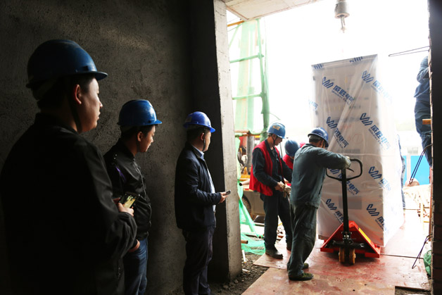 4月3日早上5時30分,天剛蒙蒙亮,第一批16臺等待裝車的KYN28柜蓋上了薄膜,正整整齊齊的等待著裝車,這是成套事業(yè)部員工們忙活一晚上的成果,這也是他們經(jīng)過重重檢驗,可以放心交到客戶手中的產(chǎn)品。5時50分,第一輛滿載著威勝電氣產(chǎn)品的運輸車輛駛離廠區(qū),開往湘潭九華北220kV變電站新建工程項目現(xiàn)場,為確保產(chǎn)品順利交付,付總一行還趕赴現(xiàn)場,在確認(rèn)了我們的產(chǎn)品在項目上吊裝卸貨順利無誤才回到廠區(qū)。