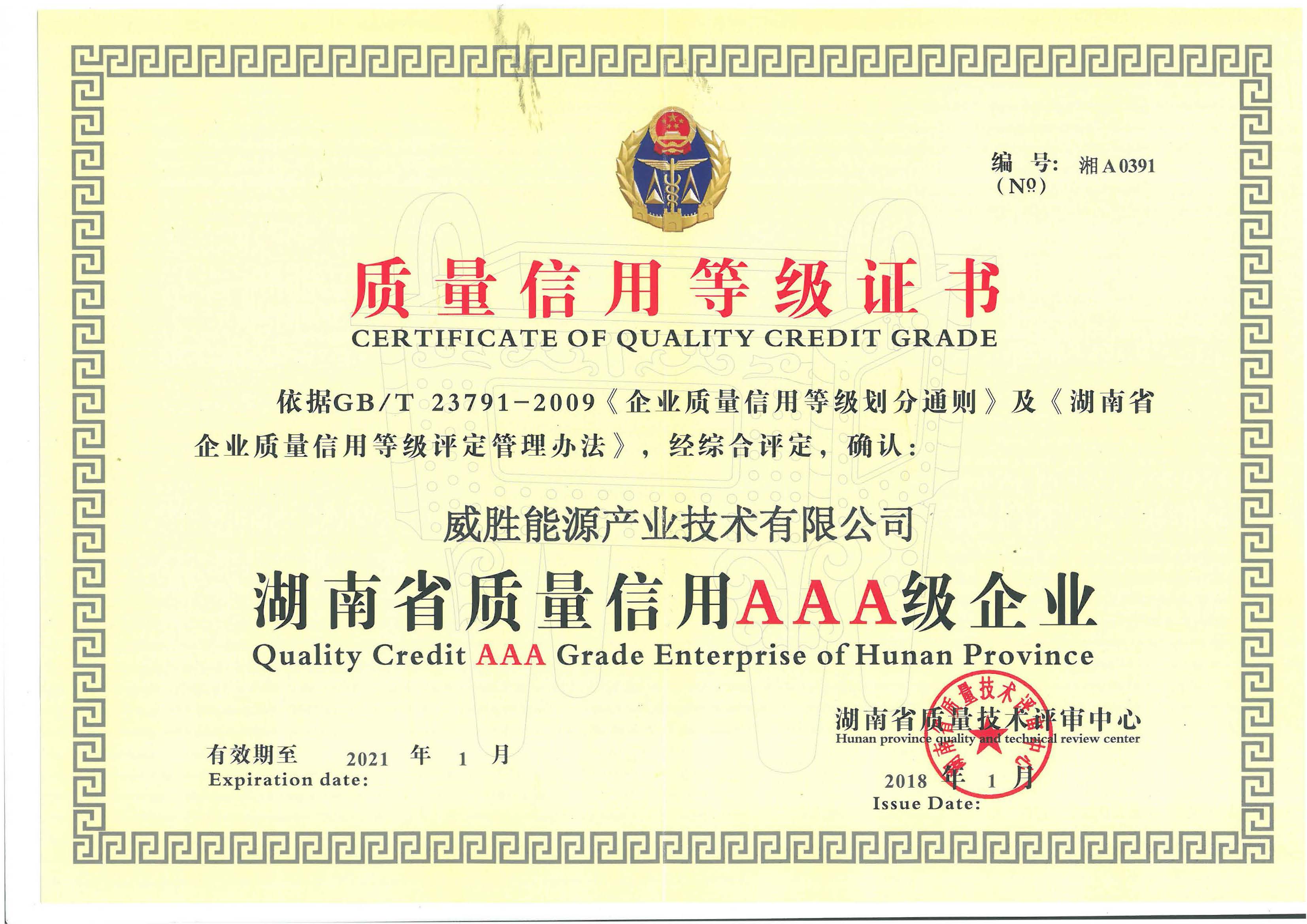 能源質量信用3A級