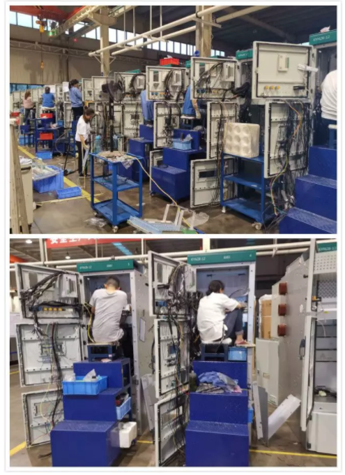 新疆阿克塔木17臺KYN28柜項目生產(chǎn)現(xiàn)場,在工藝要求極高,二次線頭數(shù)平均約1200個的情況下,二次線班組堅持一人一臺的有序工作安排,最終用3天時間完成了生產(chǎn)任務(wù)!