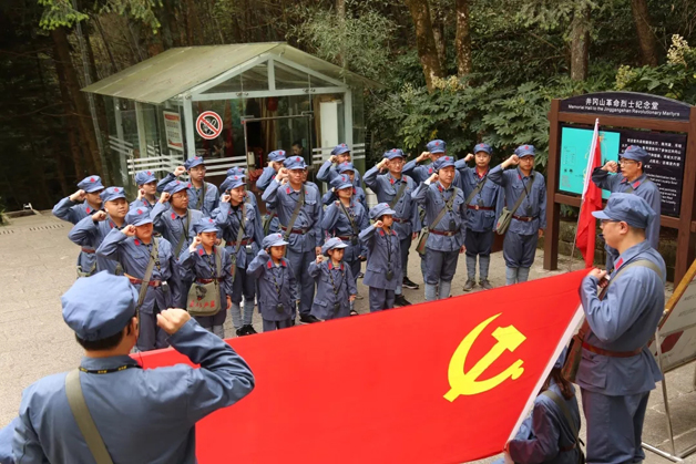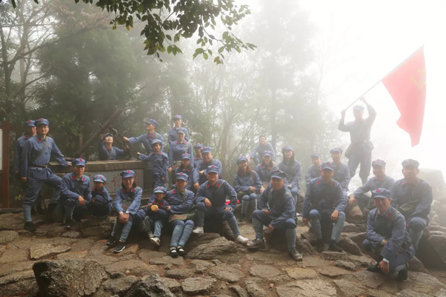 朱毛挑糧小道位于井岡山西北面黃洋界下面,原名五里橫排,是當年紅軍從寧岡挑糧上山路線的一小段,路為羊腸小道,崎嶇不平,并且經?;\罩著白茫茫的霧氣。在這次紅色之旅中,全體成員身穿紅軍服裝,頭戴紅軍帽,打著裹腿,重走當年紅軍百里挑糧的部分路程,大家在井岡山親身感受到革命年代紅軍的艱辛,這讓和平年代出生的我們對這種艱辛有更深刻的認識和體會。