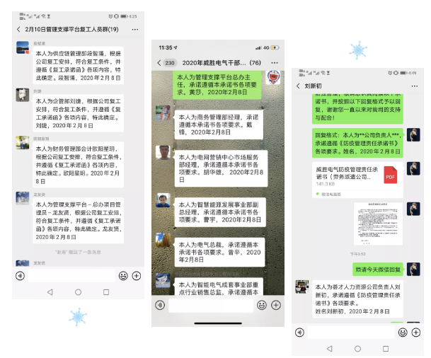 復(fù)工前,公司分別與部門經(jīng)理及高管、勞務(wù)派遣公司簽訂防疫管理責(zé)任承諾書,落實(shí)防疫期間防護(hù)措施及管理責(zé)任,與員工網(wǎng)簽復(fù)工承諾函,督促員工注意自身防護(hù),如有異常及時(shí)匯報(bào)。